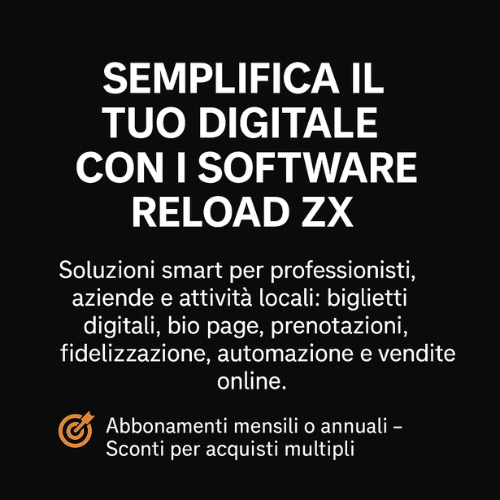 Abbiamo selezionato alcune combinazioni di software Reload ZX pensate per diverse esigenze: dal professionista digitale all’azienda strutturata.