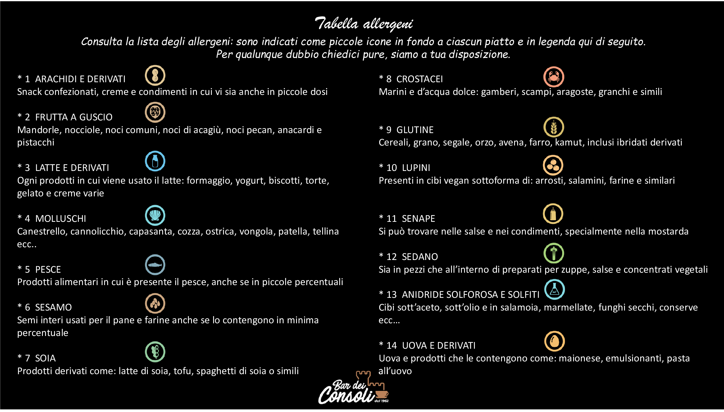 * VEDI RIFERIMENTI ALLA TABELLA ALLERGENI