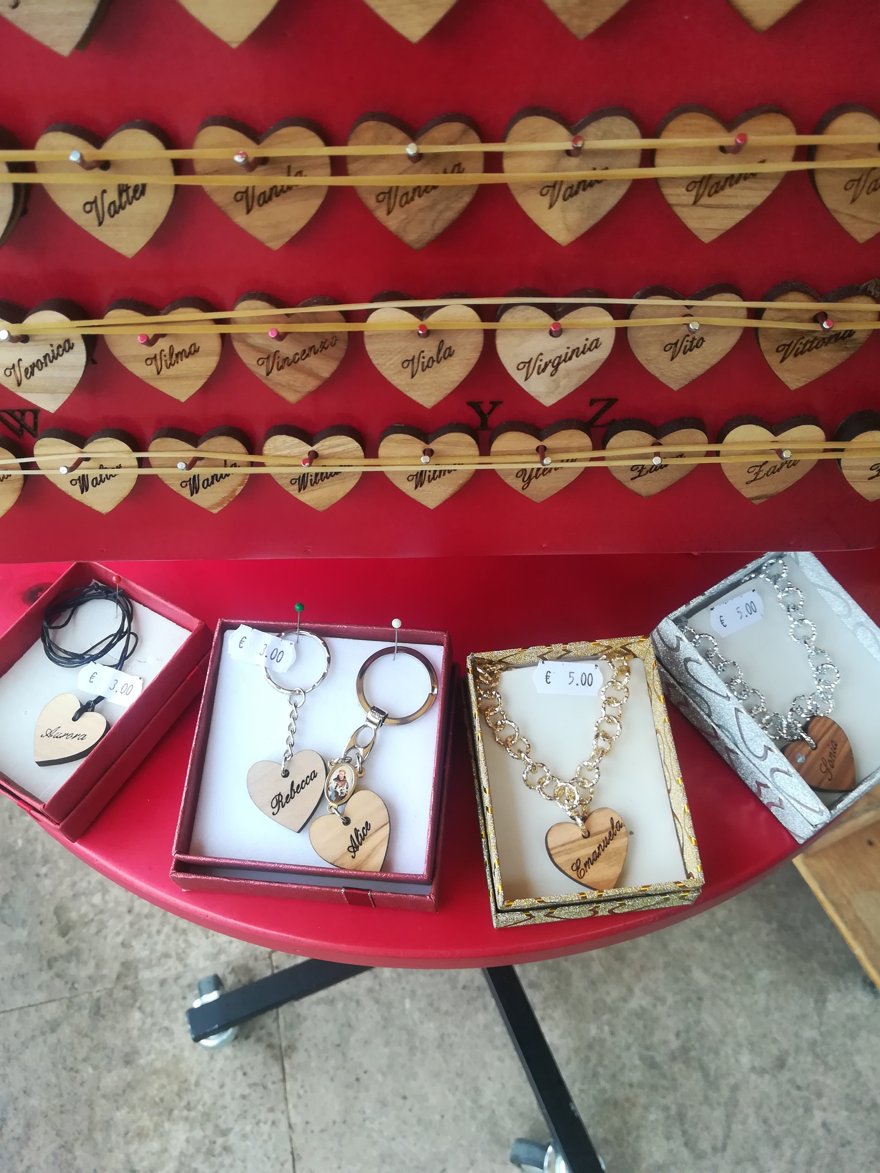 cuoricini con i nomi personalizzato. Si possono fare portachiavi, laccetto per il collo, bracciale, collana .